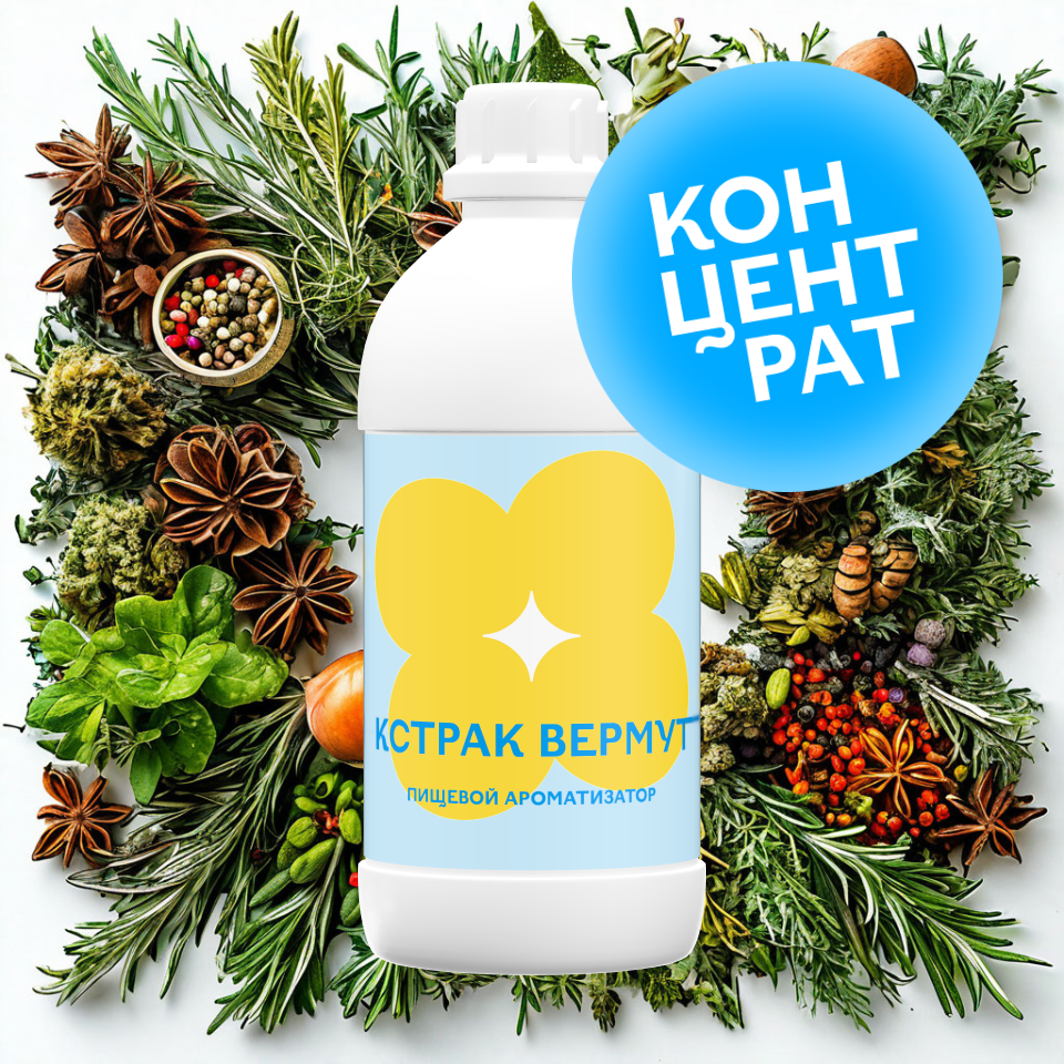 Ароматизатор пищевой «Экстракт вермута» (концентрат)насыщенный травяной букет с нотами полыни, цитруса и пряной горечи. Создаёт характерный профиль с оттенками корицы, гвоздики и лёгкой винностью. Идеален для напитков, ликёров, коктейльных смесей, тонизирующих напитков и там, где требуется сложный травяно-пряный вкус с благородной горчинкой.