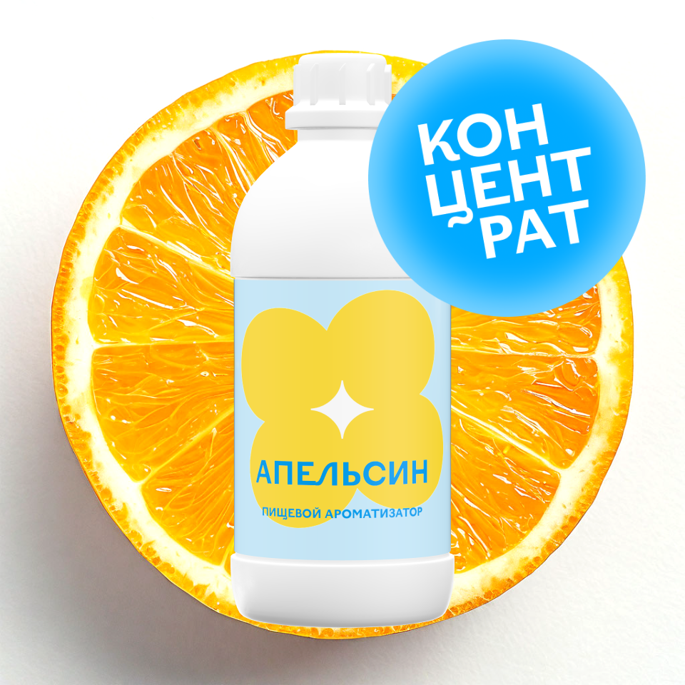 Ароматизатор пищевой «Апельсин» (концентрат) — яркий цитрусовый вкус с сочной сладостью и освежающей кислинкой, характерной для спелого апельсина. Придаёт продукции свежий и насыщенный профиль, отлично подходит для напитков, десертов, выпечки, молочной продукции и ЭСДН.