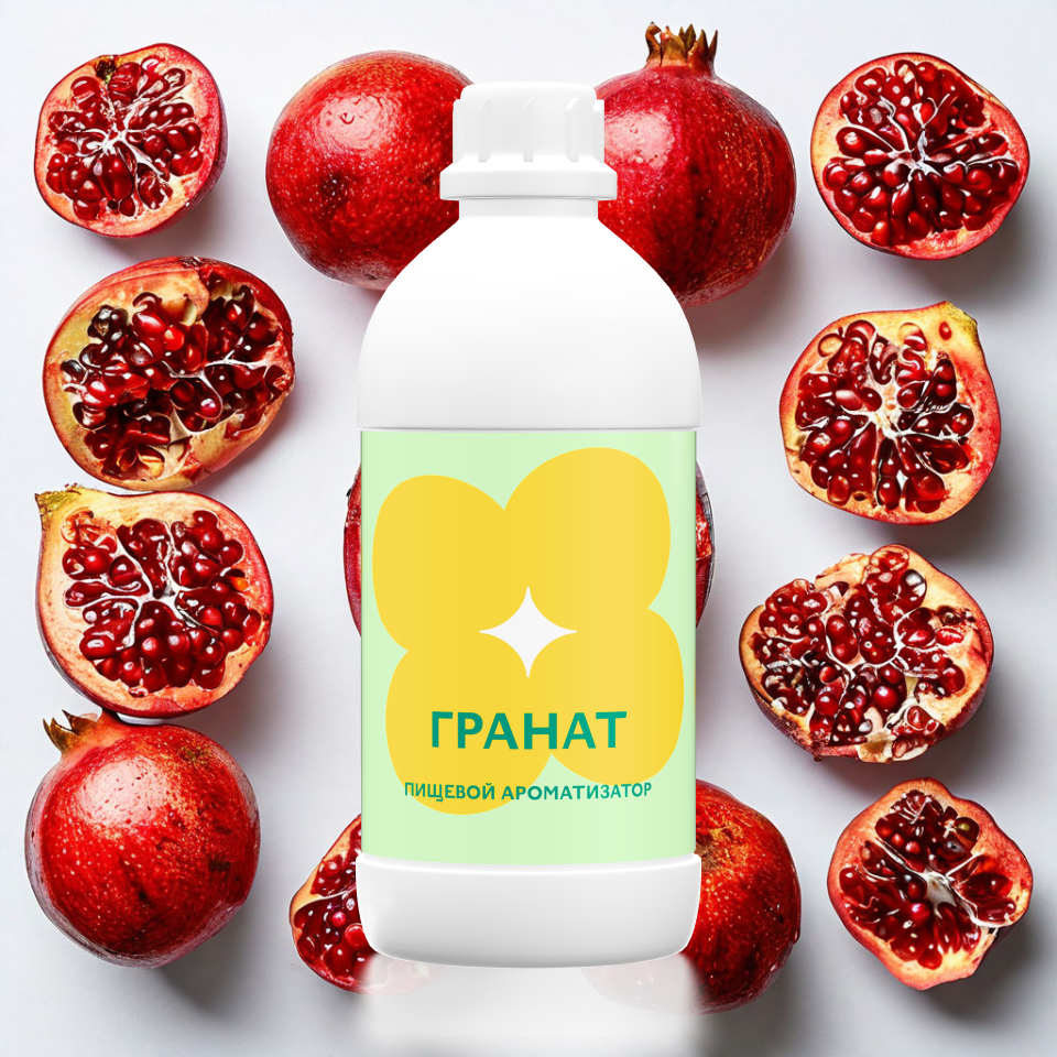 Ароматизатор пищевой «Гранат» — насыщенный фруктово-ягодный вкус с яркой кисло-сладкой нотой и лёгкой терпкостью, характерной для спелых зёрен граната. Придаёт продукции выразительный и натуральный профиль, отлично подходит для десертов, напитков, выпечки и молочной продукции.