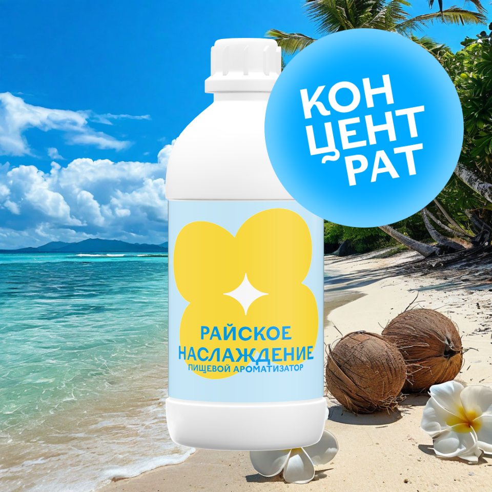 Ароматизатор пищевой «Райское наслаждение» (концентрат) — насыщенный десертный вкус с выраженными сливочно-кокосовыми нотами, напоминающий вкус популярного батончика с кокосовой начинкой. Придаёт продукции мягкий, сладкий и тропически уютный профиль. Отлично подходит для десертов, напитков, выпечки и молочной продукции.