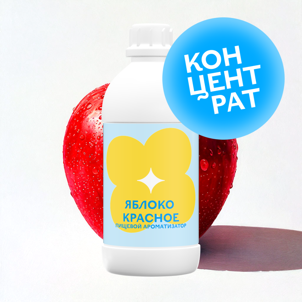 Ароматизатор пищевой «Яблоко» красное (концентрат) — сладкий и сочный вкус с мягким фруктовым профилем, характерным для спелых красных яблок. Придаёт продукции натуральный и яркий акцент, хорошо раскрывается в десертах, напитках, выпечке, молочной продукции и ЭСДН.
