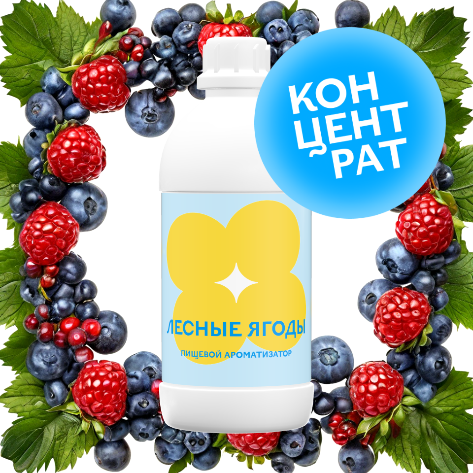 Ароматизатор пищевой «Лесные ягоды» (концентрат) — насыщенный ягодный вкус с гармоничным сочетанием сладости, лёгкой кислинки и природной свежести. Придаёт продукции яркий и натуральный профиль, отлично подходит для десертов, напитков, выпечки, молочной продукции и ЭСДН.