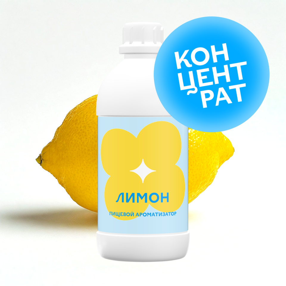 Ароматизатор пищевой «Лимон» (концентрат) — яркий цитрусовый вкус с выраженной кислинкой и свежестью спелого лимона. Придаёт продукции насыщенный, бодрящий профиль, отлично подходит для десертов, напитков, выпечки, молочной продукции и ЭСДН.